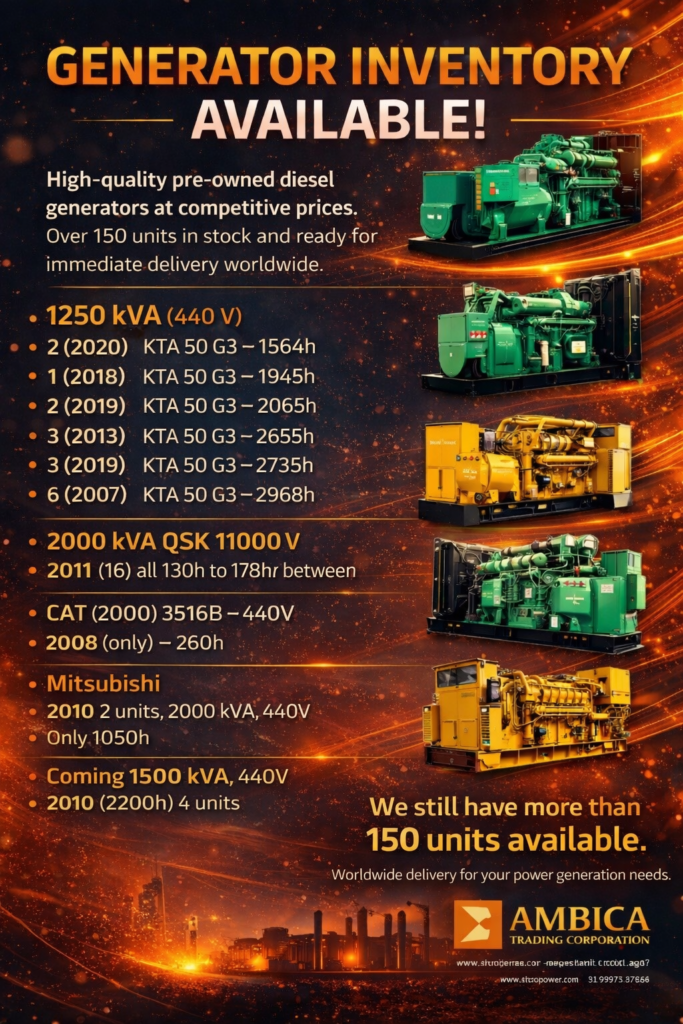 Ambica Trading Corporation supplies new, used, and reconditioned diesel generator sets from trusted brands including Cummins, Caterpillar, and Perkins — delivering dependable power solutions to clients across the Middle East, Africa, and North America.